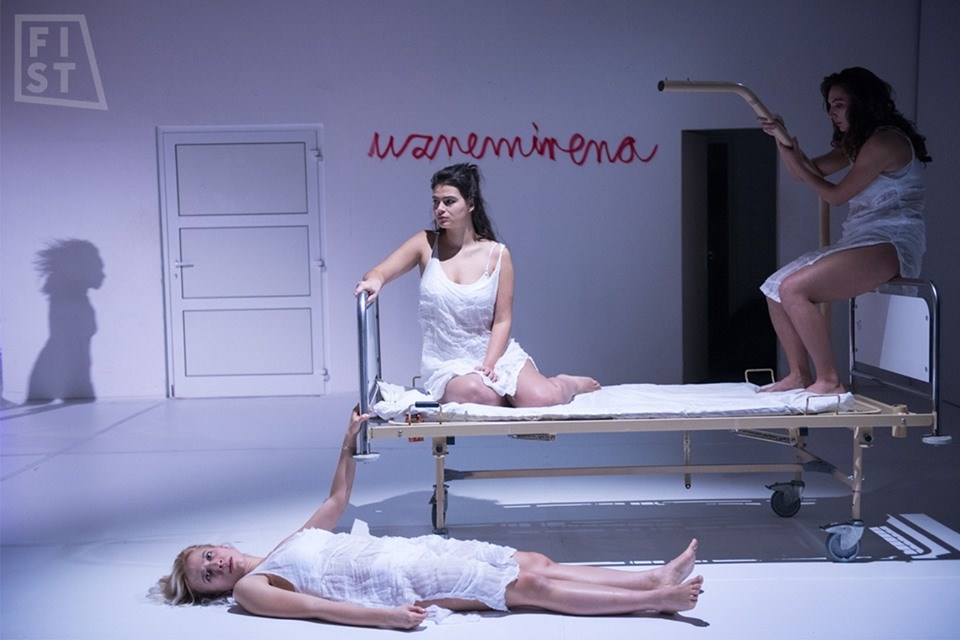 Jednostavna scenografija, goli zidovi i vrata, jedan bolnički krevet, skromna odeća i burne scene koje se nižu prikazujući šta sve trpe i kako preživljavaju dane te žene osuđene na prolaznost. One ostavljaju utisak kolektivne smelosti iz koje je izronila jedna nesvakidašnja predstava.