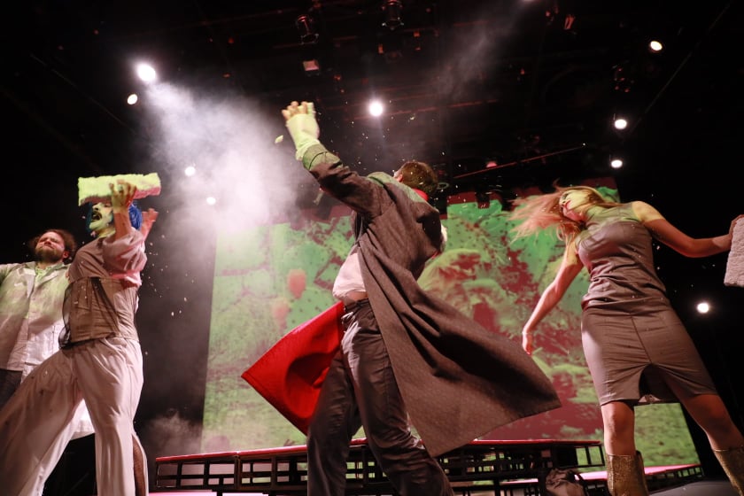 Uloge tumače mladi uspešni glumci: Miloš Lazić (Paduk), Stefan Beornja (Madam), Ana Rudakijević (Novinarka), Nikola Knežević (Pomoćnik/Policajac), Nikola Štrbac (Kapelan), dok ih tokom predstave muzički prati Omnibupra bend.