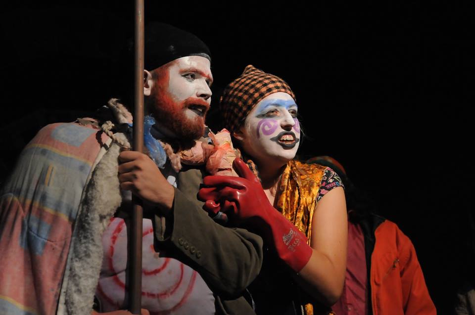Prva predstava iz selekcije, „Kralj Ibi“ u izvođenju Dramskog studija mladih Gradskog pozorišta Bečej, je odigrana na velikoj sceni. Po tekstu Alfreda Žarija, a u režiji Igora Pavlovića, predstava „Kralj Ibi“ je nasmejala publiku, ali i ostavila gorak ukus u ustima. Sve vreme sam razmišljala o rečima selektora festivala da nije dozvolio da ga povuče dobra režija ili dobar tekst, već se fokusirao na sjajne izvedbe pojedinaca ili čitavog kolektiva. U ovoj predstavi je prepoznatljiv taj duh dobro uigranog kolektiva. Ova groteska pruža glumcima moć igre na sceni. Kostimi, šminka i rekvizita su sjajni i savršeno pariraju tekstu koji glumci izgovaraju. Moram priznati da „Kralj Ibi“ zaista izgleda kao veliki zalogaj, ali i da su ga mladi glumci iz Bečeja odlično sažvakali. Ono što mene uvek kupi u ovakvim predstavama jeste odličan scenski pokret. Predstava je fizički i glumački jako iscrpna i Dramski studio mladih Gradskog pozorišta Bečej zaslužuje svaku pohvalu, s obzirom na to da bi mogli stati rame uz rame sa profesionalnim glumcima. Postoje delovi u predstavi koji su možda suvišni, odnosno, čine prazan hod, ali su zaista neminovni. Ono što možda najviše privlači pažnju jeste adaptacija teksta, koja savršeno prikazuje trenutnu situaciju u našoj zemlji. Bez dlake na jeziku se kritikuje sistem i to vrlo prepoznatljivim sredstvima, što ovu predstavu čini i aktivističkom.