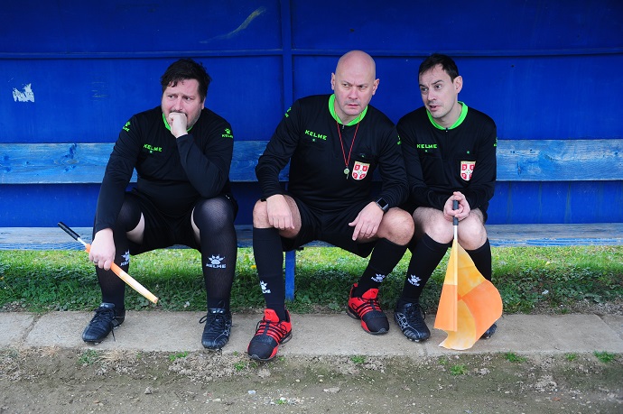 „Pozorišni komad Blitva i krompir mađarskog pisca Zoltana Egrešija, izuzetno je igran i popularan komad poslednje decenije u mnogim pozorištima Istočne Evrope. Savremena tragikomedija o trojici prijatelja zapravo je priča o dva gubitnika koji će pokušati da uzurpiraju planove svog uspešnijeg kolege, što iz zavisti, što u cilju preotimanja voljene žene. Iza ove duhovite i životne priče kriju se mnogi neuspesi savremenog doba, i životni i poslovni: izgubljene ljubavi, uništeni snovi o sreći, nemoć da preuzmemo život u svoje ruke, slabost da prevaziđemo prepreke koje su nas slomile. Tri glavna junaka, Sapun, Umetnik i Laki, u ulogama fudbalskih sudija neke od nižih liga našeg bednog fudbala, pokazaće nam kako se zapravo u svakom od njih, kao u nekom ogledalu, možemo povremeno prepoznati. Na kraju nema hepienda ni za jednog od likova, ali nema ni velike poruke – osim da život prihvatimo onakvim kakav je i povremeno porazgovaramo sami sa sobom, možda problem nije uvek izvan nas.“