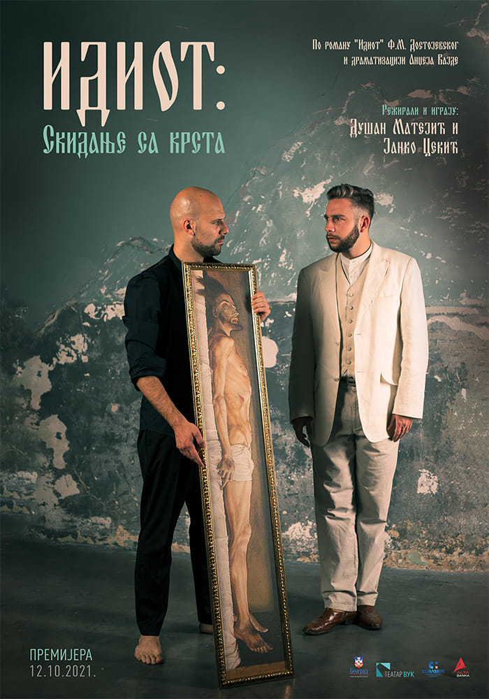 Za početak pozorišne sezone Teatar Vuk priprema premijeru predstave „IDIOT: Skidanje sa krsta” autorskog i glumačkog dvojca Dušan Matejić i Janko Sekić prema kapitalnom delu Fjodora Mihailoviča Dostojevskog, koja će biti izvedena 12. oktobra u 20.00 na sceni „Kult”.