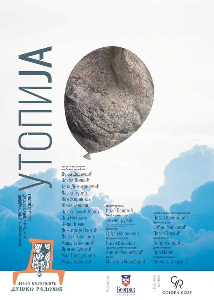 Premijera predstave „Utopija” biće 11. februara u 19 časova u Malom pozorištu „Duško Radović”. U predstavi je učestvovalo petnaest osnovaca i srednjoškolaca koji su ujedno i autori ove predstave i izvođači. Režiju je radio Ivan Baletić, a dramatizaciju Tijana Grumić, koja je napisala tekst na osnovu dokumentarnih izjava učesnika.