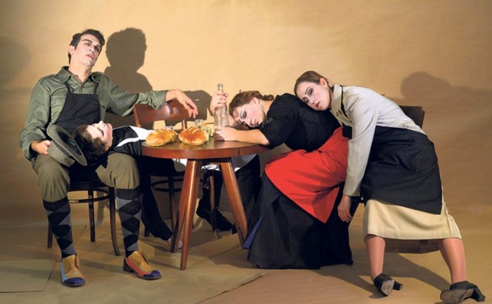 Ova četiri revolucionara se u predstavi šetaju kroz vreme i pričaju jedni sa drugima, ali i sa nama „sa one strane“. Šta to oni poručuju u svetu Harmsovskog apsurda, kome je, inače, u podtekstu i posvećena ova predstava - gde je sve moguće i ništa nije moguće, gde ljudi nestaju,