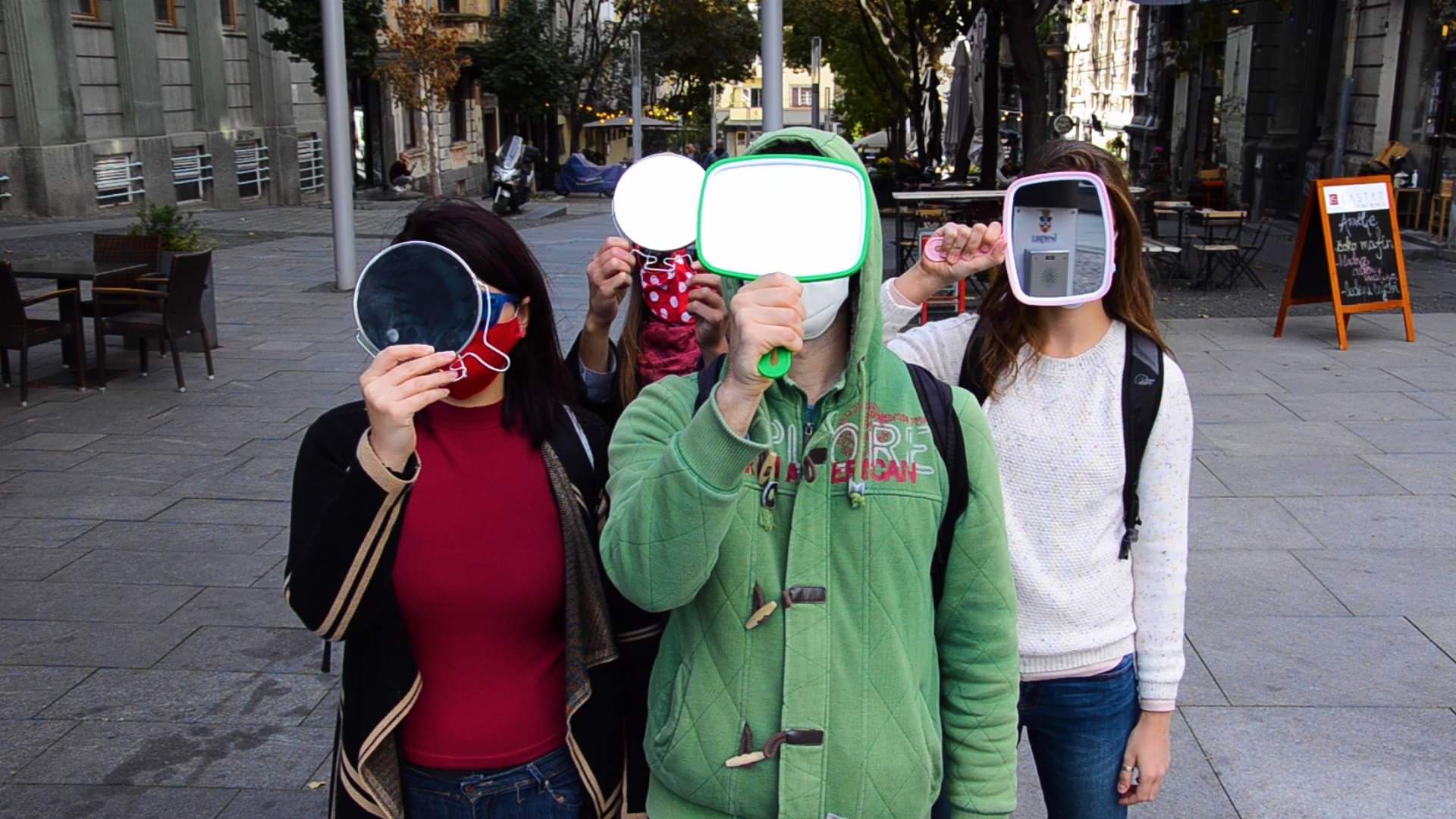 I na kraju, u ovo novo doba ozbiljne krize za izvođačke umetnosti odlučujemo da prostor ispred kamera za nadzor postane naš novi izvođački prostor za dvosmernu komunikaciju!