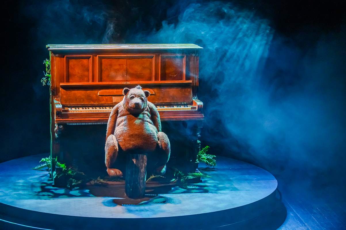 Predstava „Mali koncert za medveda i klavir” od prikazivanja prvih scena privlači pažnju svedenom scenografijom. Publika na sceni posmatra klavir iza kog izviruju glumci, a zatim se pojavljuje i medved o kome i govori ova predstava. Glumica, u ovom slučaju pripovedač, vodi nas kroz priču o jednom medvedu koji svojim muzičkim talentom uspeva da osvoji čitav svet. Ovo je predstava koja nam govori o veri u sebe, o lepotama jedostavnosti i maštanju, ali i o prijateljstvu i toj neraskidivoj ljubavi. Pripovedački narativ ove predstave, kao i scenografija koja je pokretna (čas posmatramo medveda i klavir, čas ono što se dešava iza njega), prepušta gledaoca čarobnoj atmosferi, pa pored dece kojoj je i namenjena, vešto komunicira i sa starijom publikom, pružajući joj slobodu da mašta i i pobegne u svet detinjstva i slobode koje ono pruža.