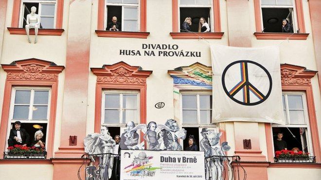 Upravo je ovo pozorište sa čudnim imenom ono u kojem sam se obreo sinoć. Znate ono kada odete u neki drugi grad pa svaku pešačku ulicu zovete Knez Mihajlovom, svaki trg sa konjem – Trgom, i svaku dugačku i široku ulicu, koja ima tramvaj i dosta prodavnica – Bulevarom, i svako veliko naselje sa blokovski raspoređenim zgradama – Novim Beogradom, e pa ja bih ovo pozorište uporedio sa Bitef teatrom. „Husa na provázku“ se nalazi u zgradi sagrađenoj u gotičkom stilu, koja je kasnije dosta izmenjena raznim rekonstrukcijama, na trgu ispred pozorišta preko dana je zelena pijaca, a i pripada Centru za eksperimentalna pozorišta, što bi bila još jedna sličnost sa Bitef teatrom. Nije baš da sam izrazito želeo da prvo odem u to pozorište, više je bilo do izbora predstave, sa češkom drugaricom tražio sam predstavu koju ni ona nije gledala, izbor je pao na „Ameriku“ u režiji Mihala Dočekala, po romanu Franca Kafke.