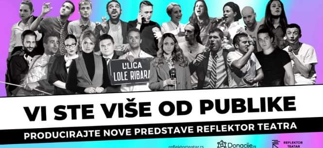 Reflektor teatar je od četvrtka, 19. avgusta, zvanično otpočeo crowdfunding kampanju pod nazivom „Više od publike“ kojom se pozivaju svi građani i građanke da budu producenti i producentkinje novih projekata koji se pripremaju u ovom nezavisnom pozorištu.
