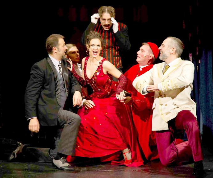 U podnaslovu predstave “U ime gospoda”, koju je u pozorištu "Deže Kostolanji" režirao Andraš Urban, stoji: "Jedna brutalna politički nekorektna predstava koja govori o hrišćanstvu i islamu, ogradama i evropskoj demokratiji, muškarcima i ženama, ljubavi i strasti, ljubavi i mržnji i strašnoj mržnji...“