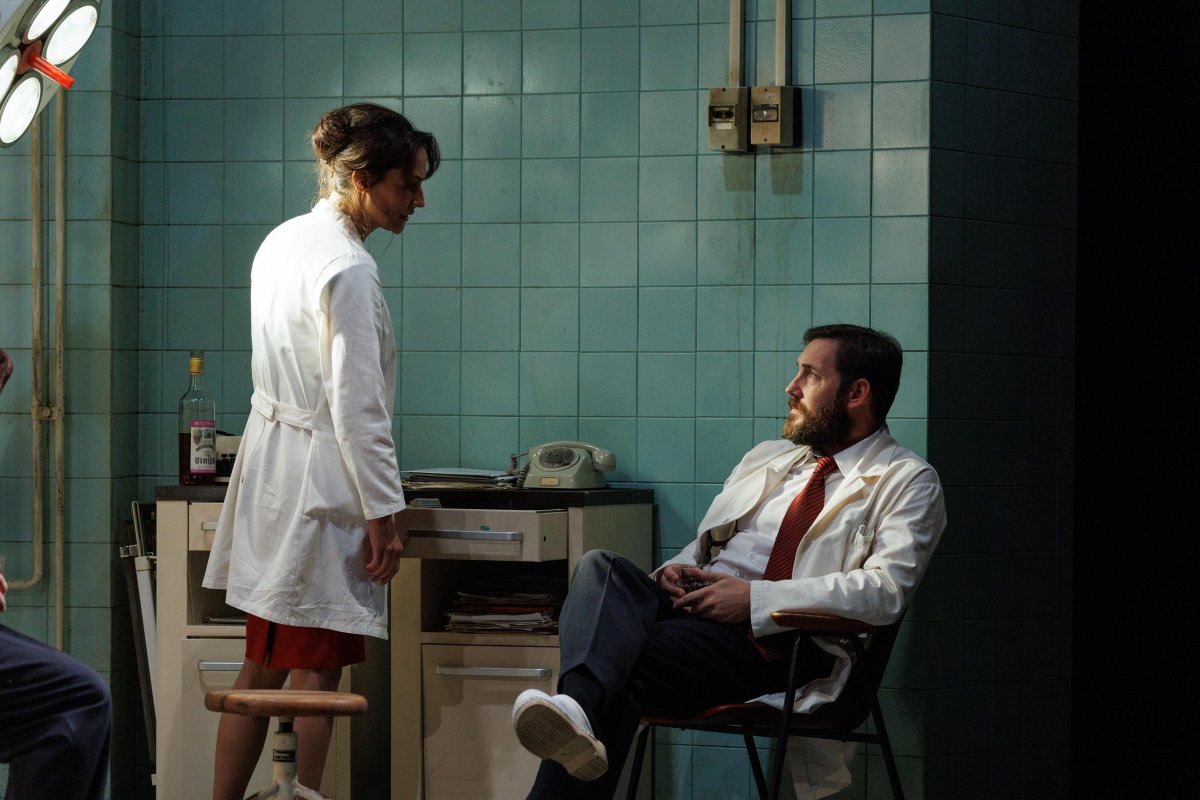 Odnos između Vilme i njenog kolege i supruga Jelineka dobija tragičnu auru nakon što dolazak Emila inicira razgovor o suprotstavljenim pogledima dvoje supružnika. Mučna i sirova tematika predstave poteže, danas gotovo nepostojeću, no u periodu nastanka dela verovatno ambicioznu polemiku oko izjednačavanja žrtvi i počinioca. Njen glavni zagovornik upravo je Jelinek, a način na koji publika saznaje o njegovoj informisanosti o tome šta se događalo njegovoj izabranici posebno je interesantan. Naime, u razgovoru upoznavanja sa neočekivanim posetiocem, on izgovara rečenicu poput: „Ti si, Vilma, beše radila u perionici?”, kao da bi razgovor o logorima smrti, ako je ikada vođen, lako mogao biti zaboravljen.