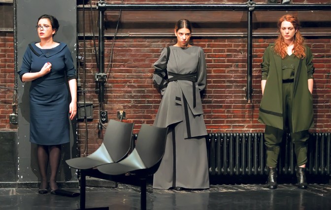 Prvu stvar koju sam primetila bila je minimalistički uređena scena. Jedna stolica, tri žene i njihove reči. Posle nekoliko minuta, shvatila sam da za ovakvu predstavu ništa više nije ni potrebno. Slikoviti monolozi i izrazi lica su me u određenim trenucima odveli u pozorište Dubrovka i u 2002. godinu. Naježena sam i kontrolišem suze.