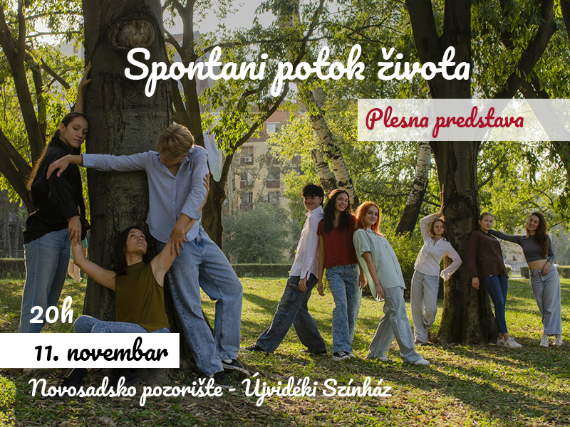 U Novosadskom pozorištu – Újvidéki Színház 12. novembra sa početkom u 20 sati biće premijerno odigrane plesne predstave „Spontani potok života” i „S U D - slobodno ujedinjeno društvo”. Režiju predstave „Spontani potok života” potpisuje Aleksandra Keting, dok će „S U D – slobodno ujedinjeno društvo”režirala Aleksandra Čavić.