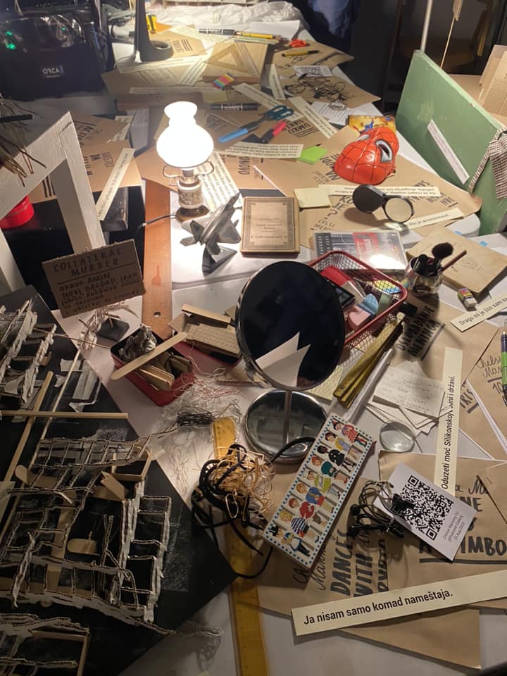 Na početku ovog pozorišnog pretresa imate priliku da se intervenišući na brojnim predmetima, koji se nalaze na stolu, upoznate sa glavnom pričom, a svaki od njih je poput delića slagalice, koji, iako na jednom mestu deluju razbacano, čine jednu smislenu celinu.