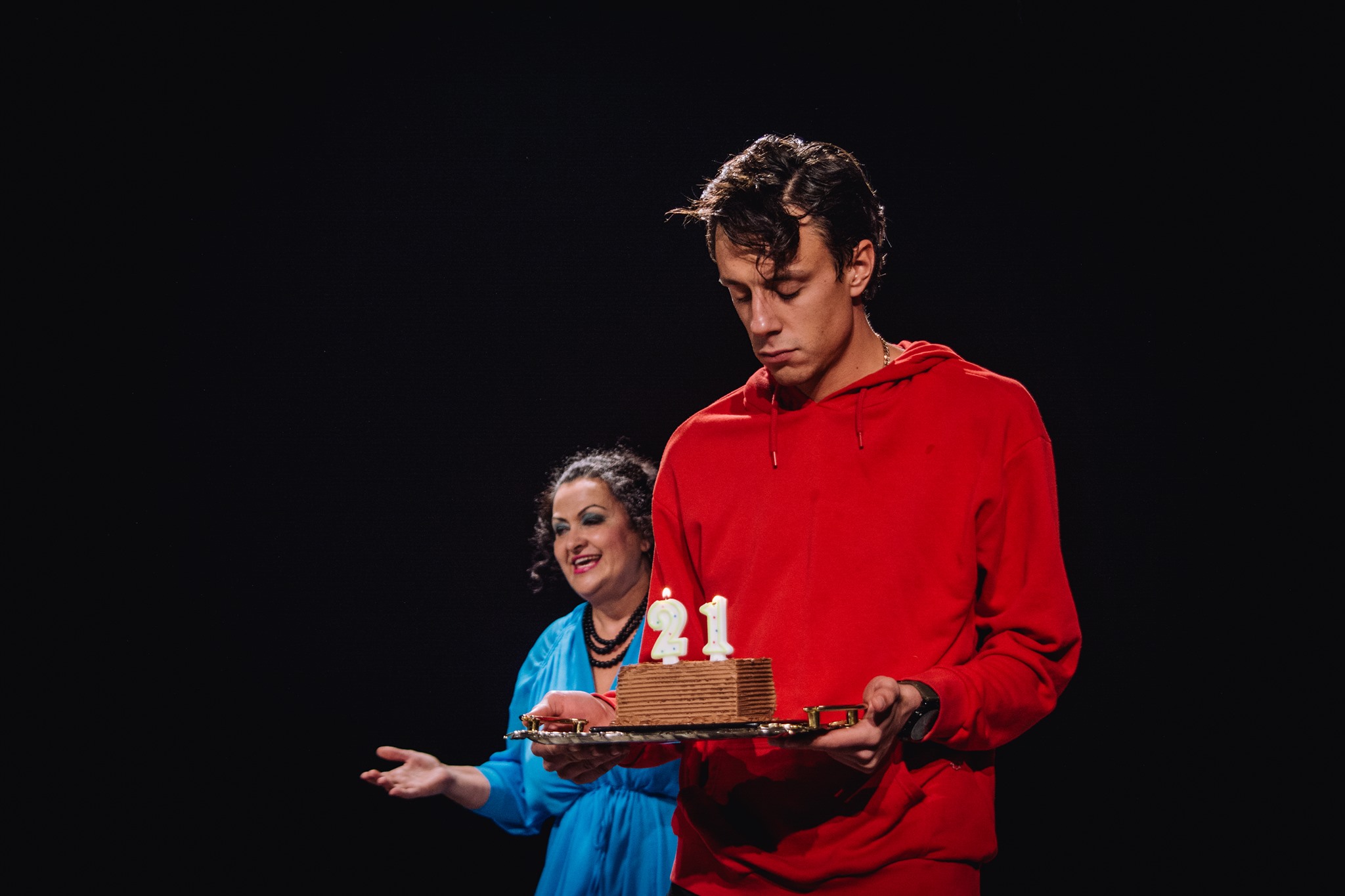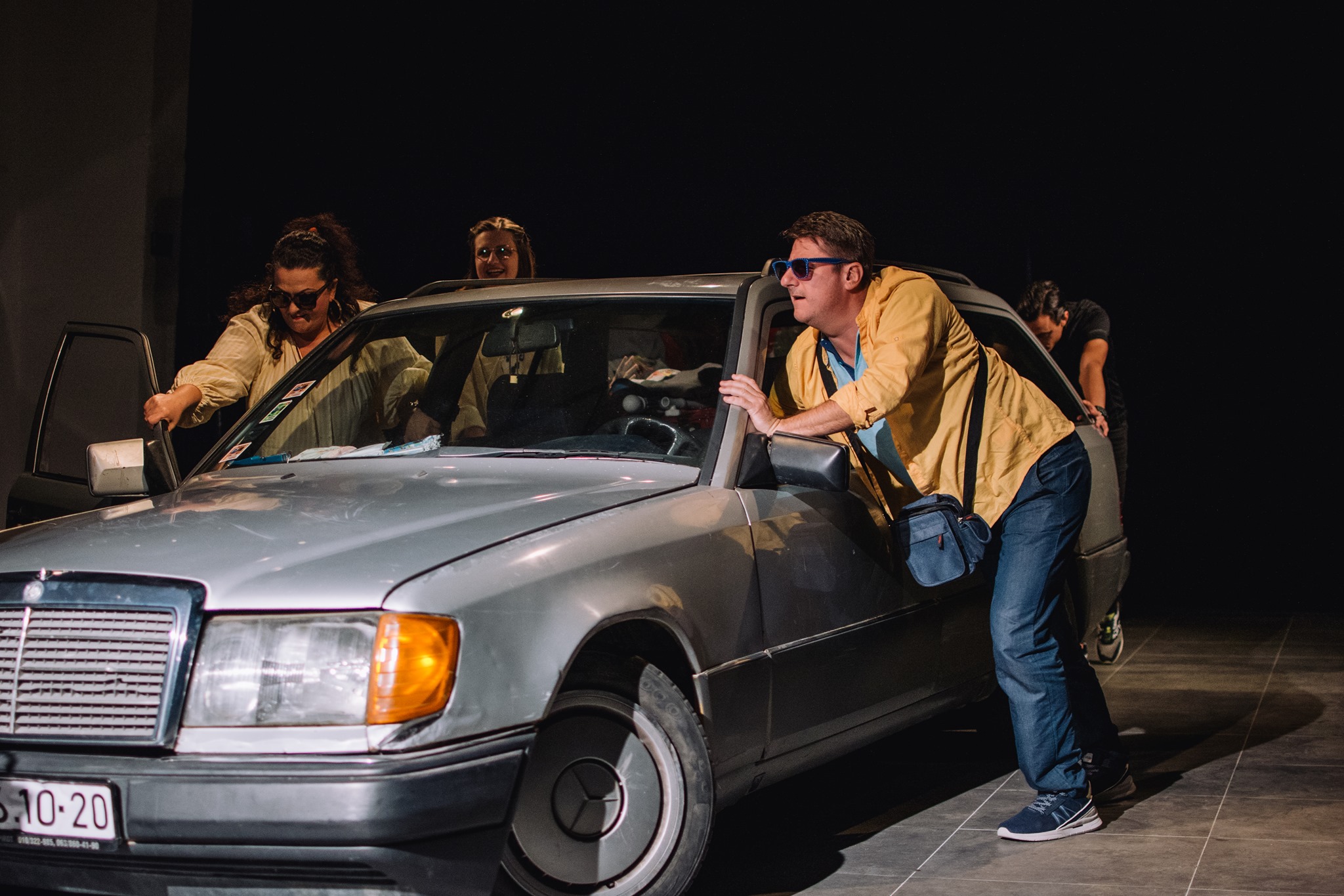 Glumačku ekipu čine: Vesna Stanković (majka Radmila), Aleksandar Mihailović (otac Dejan), Julija Petković (Katarina), Dejan Maksimović (Novak) i Marko Pavlovski, koji igra čitav spektar likova (naratora, radnika na pumpi, motociklistu, mornara, carinika).