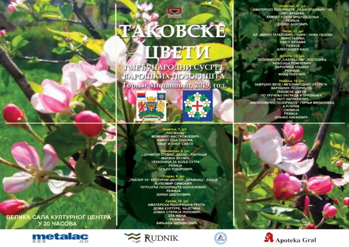 Od 7. do 14. jula u Gornjem Milanovcu će biti održani Međunarodni susret varoških pozorišta pod nazivom „Takovske cveti“, na kojima će biti izvedeno osam predstava, šest takmičarskih i dve revijalne.