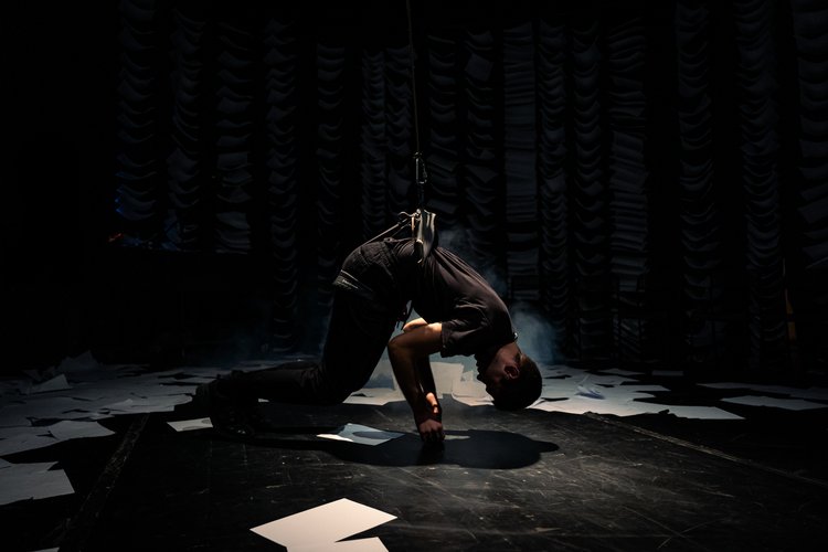 Dimitris se na sceni bavi samoposmatranjem, a na ovo preispitivanje vodi publiku u ulozi saputnika sa kojim često interaguje. On sebe istražuje na dva nivoa: kao glumca koji igra Micosa i kao lik Micosa koji je računovođa. Obojica nepogrešivo svedoče o slatko-gorkoj čežnji za uspehom. Srećni su samo dok potera traje, a i tada njihova radost ne proizilazi nužno iz radnih smena, već svega između – vođenja dnevnika, šetanja, zaljubljivanja, sedenja na klupi. Micos je opsednut napredovanjem i statusnim simbolima koji bi ga izdvojili iz mase; dani mu prolaze u želji da postane uspešan, slivajući se jedan u drugi, oblikujući začarani krug iz kojeg ne može izaći. Centralni element scenografije, konopac za penjanje, jako je lepo iskorišćen. Micos na njemu spava, uz pomoć njega zaljubljeno leprša unaokolo, ali na njemu i sniva noćne more, obavlja svoje obaveze i vremenom upada u nesnosnu rutinu – tada on postaje okov kojeg poželi da se oslobodi, ali odmah uviđa da je za to kasno; nije ni primetio da su postali jedno. On se srodio sa svojom željom, dozvolio joj je da ga definiše. Upravo od toga Dimitris strahuje. Iz ugla zaključuje: „Etiketa je ćelija ljudskog bića.”