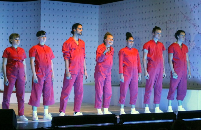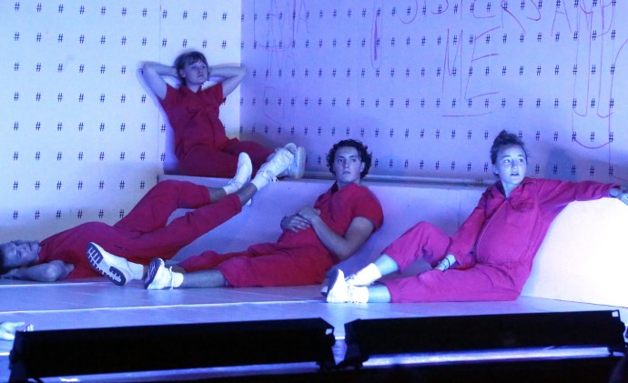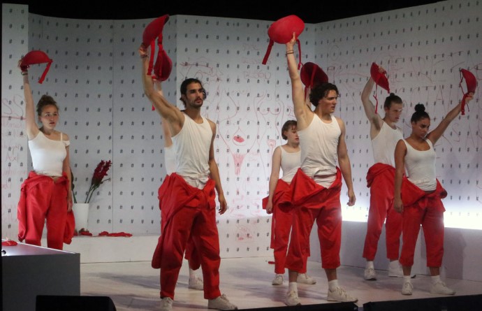 Predstava takođe sadrži i muzičke performanse: Papaoutai je refren trudnoće i abortusa, trudnički stomaci se kače oko pojasa i ponovno pokrivaju zatvorski uniformisanim narandžastim kostimom, potom se performansom, koji ima elemente ritualnog (uzevši u obzir i uvučeni lučni deo scenografije što aludira na oltar moralnih vrednosti) postrojene devojčice lupaju po stomacima, sa jasnom naznakom procesa koji se odvija iza plesa smrti. Kostimi kao zatvorske uniforme u funkciji su depersonalizacije karaktera (što ponovo može da se poveže sa pomenutim stvarnim događajem i odnosom medija prema devojčicama kao bezličnoj grupi), a heštegovi i crteži ženskih reproduktivnih organa – koje crtaju sami akteri na sceni – kao da su u funkciji simboličkog prikaza postepenog otkrivanja, ne toliko ni seksualnosti, no rane svesti dece o reproduktivnosti. Čitava scenska postavka je minimalistička te, iako je tema predstave aktuelna i društveno angažovana, scena dobija i limbičnu, poetsku dimenziju.
