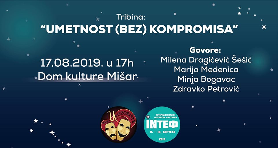 Tribina „Umetnost (bez) kompromisa“ portala „Hoću u pozorište“ koja će biti organizovana u okviru pratećeg programa prvog INTEF festivala, održaće se u subotu, 17. avgusta od 17 časova u Domu kulture u Mišaru.