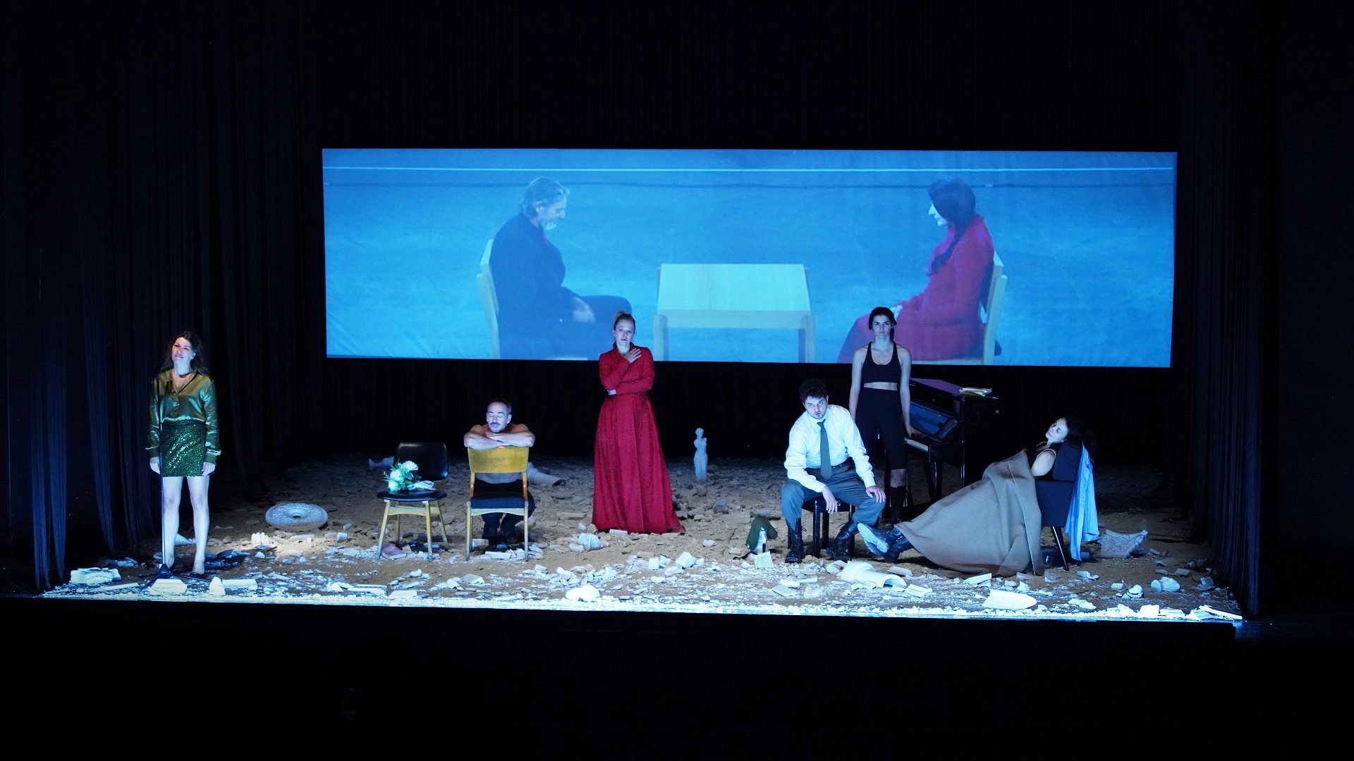 Veliki broj ljudi koji radi na predstavi uspeva da iz jednog konceptualnog razmišljanja u delu realizuje osećanja na sceni, te iz tog razloga Portačeli navodi da jezička barijera nije predstavljala veliki problem prilikom saradnje, jer je vrlo brzo nestala. Ekipa glumaca koju čine Sloboda Mićalović u glavnoj ulozi Ona, zatim Nataša Tapušković, Milena Vasić, Nikola Rakočević, Iva Manojlović, Damjan Kecojević, kao i Rosa Renom i Kivani Menolašina Hulijan, uspela je da prenese duboku emotivnu poruku ovog specifičnog komada, te da će on zaživeti na sceni na jedan potpuno drugačiji način.