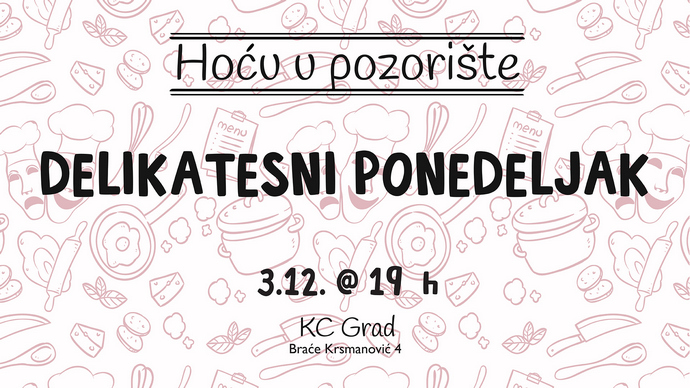 Dođite u ponedeljak u Kulturni centar GRAD gde ćemo uz večeru i desert moći da se upoznamo i proćaskamo o pozorištu i o još nečemu.