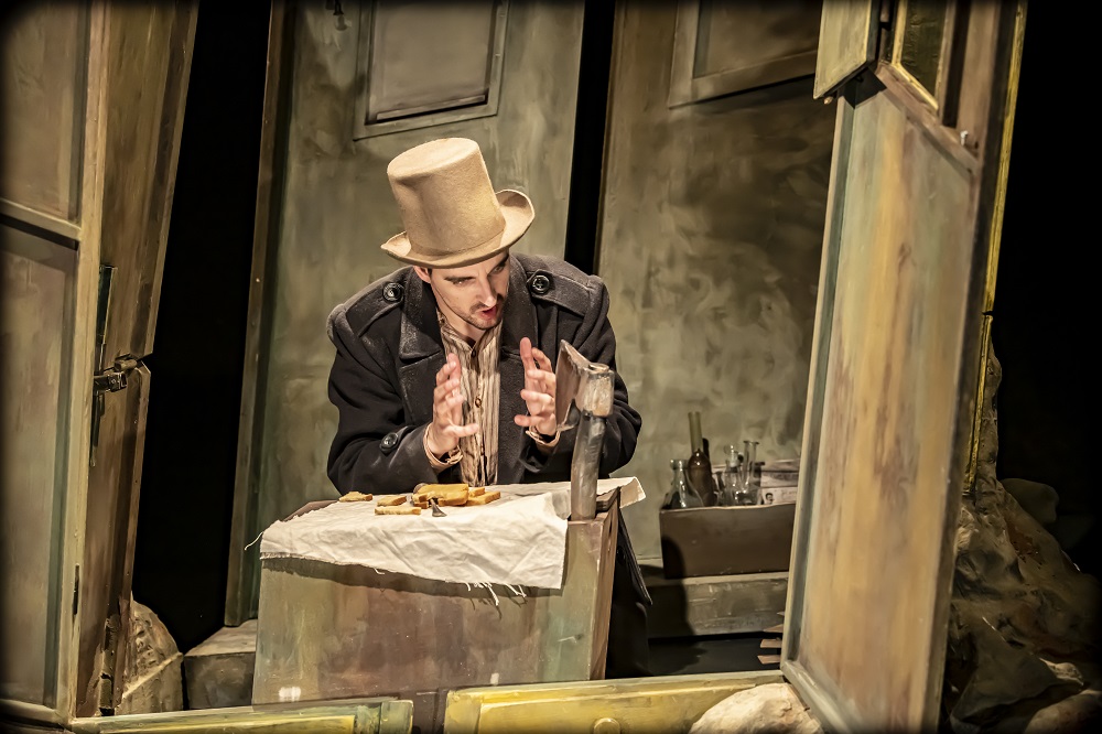 Glavnu ulogu u predstavi tumači glumac Pozorišta mladih, Aleksandar Milković. Predstava je osmišljena kao monodrama u kojoj samo ulogu Raskoljnikova igra glumac, dok su ostali likovi lutke ili projekcija. „Kada je Emilija predložila da radimo ovaj projekat rekla je da bi volela da to bude monodrama i da budu uključene lutke i predmeti. Mislim da je ovo najteži proces koji sam imao do sad, jer mi je ovo prvo iskustvo sa lutkama i sa objektima”, izjavljuje Milković.